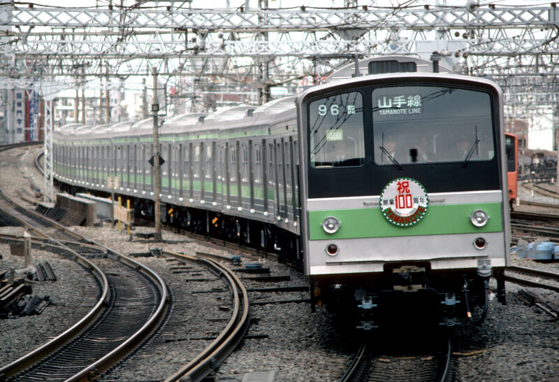 山手線運転開始100年の記念ヘッドマーク付けた205系。